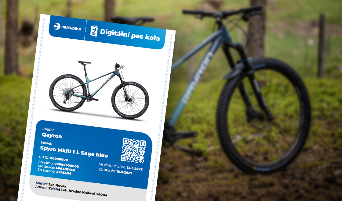 Digitální pas je virtuální dokument s identifikací kola a jeho aktuálního majitele. Fotografie, název kola, výrobní čísla, platnost záruky, servisní historie a informace o majiteli. Vše v jednom dokumentu, který si můžete vyexportovat do PDF a využít třeba při prodeji kola. Kola s digitálním pasem jsou zároveň evidována v registru kol Care.bike SAFE.